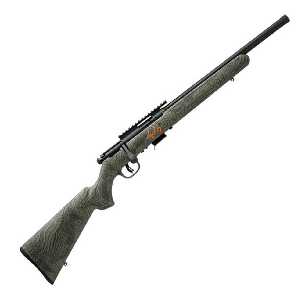22LR SAVAGE MARK II BOLT ACTION RIFLE, ALLIGATOR CAMO STOCK, 16″ BBL