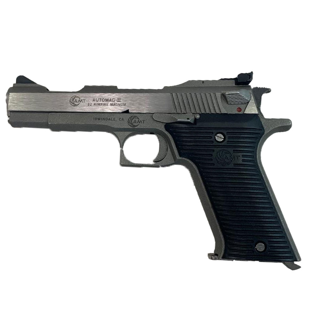 The AMT AutoMag II is a semiautomatic handgun chambered in .22 WMR, that was manufactured by Arcadia Machine and Tool from 1987 until 1999, and was manufactured by High Standard until their closure in 2018. Wikipedia